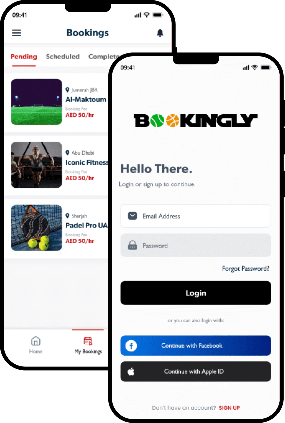 Bookingly is a user-friendly mobile application that allows users to easily book gym, padel court, and football stadium slots while providing real-time availability updates, secure payment options, and in-app messaging with sports venue hosts.